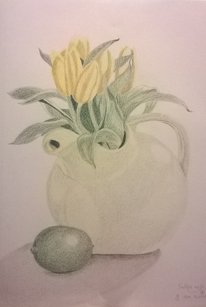 So it is with some nervousness that I pull out my sketch pad — not to draw, mind you…not yet; but to glance backward, to turn those pages and peek. Half the pad is filled and blooms with color. Yes, there are missteps, and the pad holds a fair amount of incomplete drawings — I am notoriously slow and occasionally delay putting pencil to paper when I find a particular still-life daunting. In spite of this, there are drawings that surprise me — I drew that? I laid those colors over the page and coaxed that image into being? It is a relief to see, a concrete reminder that I must trust. Despite the starts and stops I may encounter — planned or otherwise — I must trust that the pencils will know their place in my hand when I pick them up again.